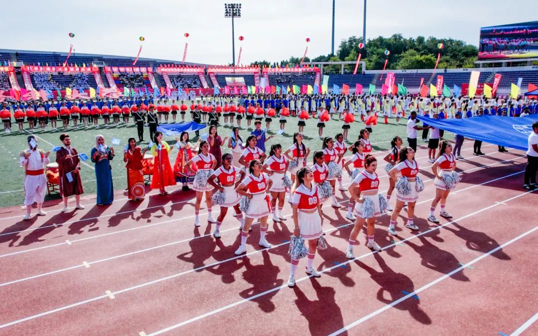 在运动场中献上她们的民族特色舞蹈《凤歌鸾舞》,婀娜的舞姿和充满异域风情的服饰与音乐为运动会增添了别样的色彩。