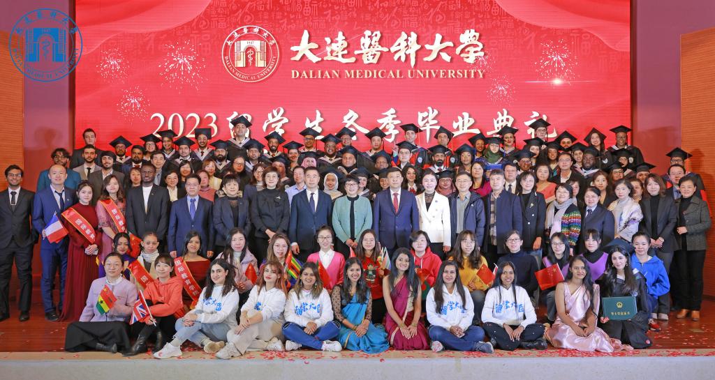 邵淑娟致辞,她代表学校对来自21个国家的67名国际学生顺利完成学业表示热烈祝贺并表达了殷切期望:“明仁、济世”,践行医者仁心的光荣使命;“甚解、敏行”,提升妙手丹心的精湛技艺;“开放、交流”,推动构建人类命运共同体。随后,卢苇宣读《2023届冬季国际学生学位授予决定》,校长赵杰分别为博士研究生、硕士研究生、本科毕业生拨穗并颁发毕业证书。