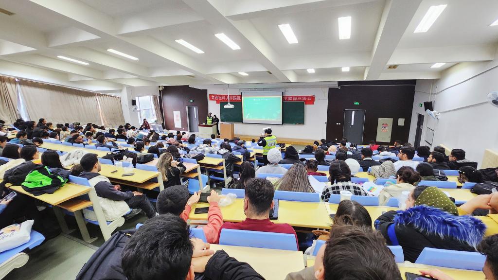 在交通安全教育环节,大连市交警支队旅顺口大队的警官通过播放交通安全教育视频,向留学生详细讲解了中国交通法规和交通安全知识。随后,警官通过播放发生在旅顺口区的真实交通事故视频,向留学生们着重强调了骑电动车佩戴头盔、遵守交通信号、不超速行驶的重要性,并提醒留学生们要时刻保持警惕,自觉遵守交通法规,确保自身和他人的安全。触目惊心的交通事故现场画面令学生深受触动,更加坚定了他们自觉遵守交通规则的决心。