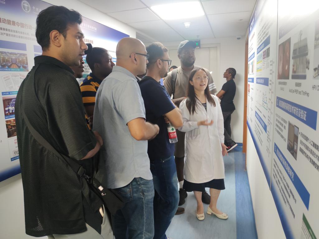 副院长高鹏、外交学院教授陆晓红也分别对两校的情况做了简单介绍。通过深入交流,同学们对北京协和医学院尤其是肿瘤医院的概况和发展有了基本的了解。肿瘤医院流行病室对宫颈癌、食管癌等疾病的研究十分深入,且成果丰硕,引起了同学们浓厚的兴趣。随后流行病室老师带领大家参观了肿瘤流行病学室,通过展板介绍和实验室的实地考察,学生们更加直观地感受到了中国肿瘤防控的发展历史与成果,并针对所见到的实验设备积极提问,极大地开阔了同学们的眼界。