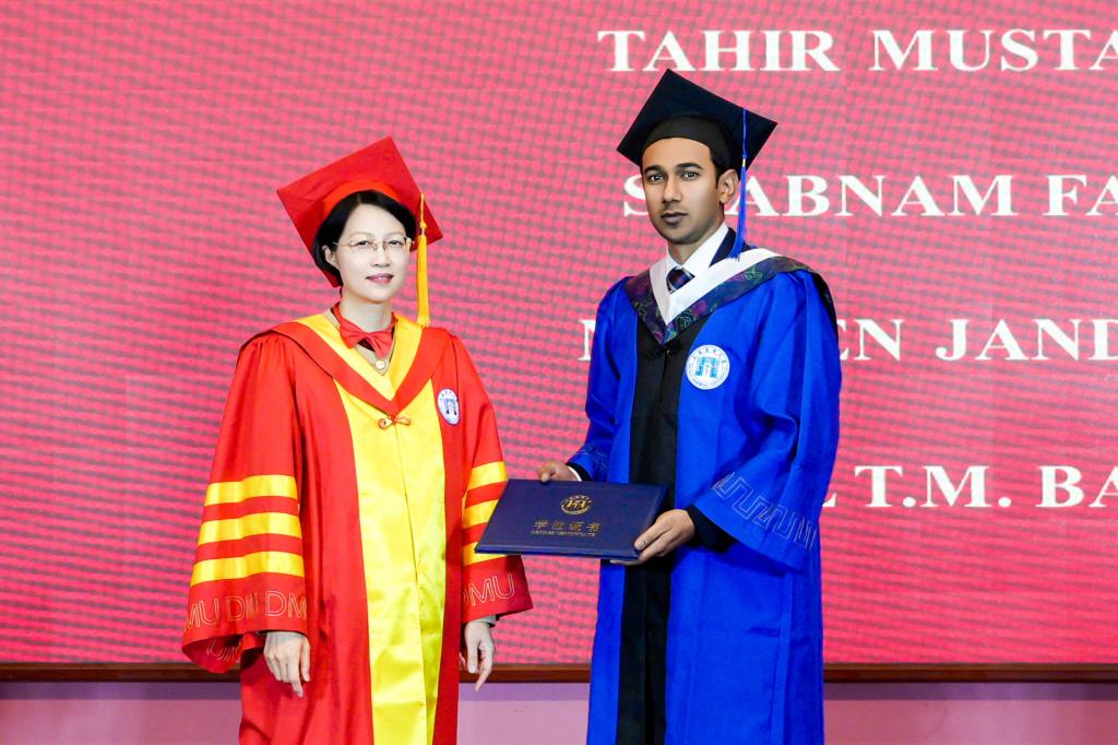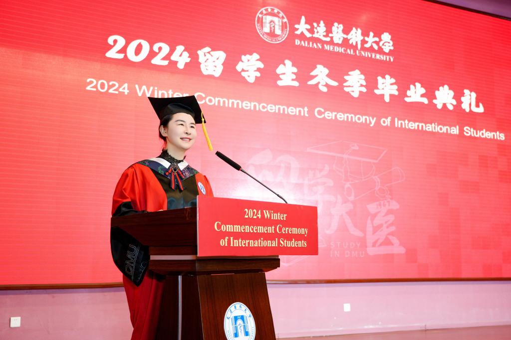 来自临床医学本科专业的留学生法赫拉代表毕业生发言,她对母校的培养表示感谢并表示今后会以大医校友身份继续发光发热,传承大医精神。