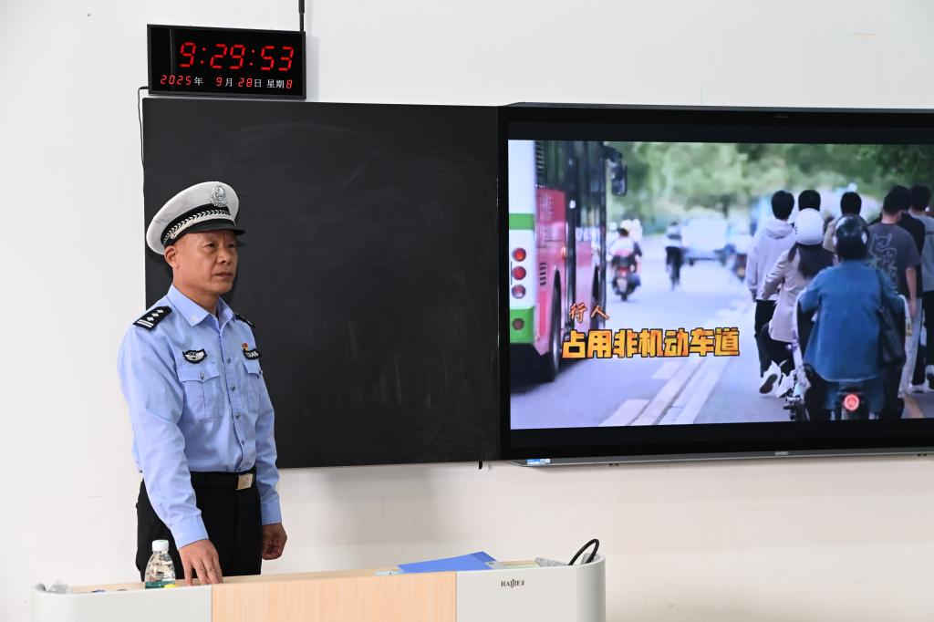 为帮助新生尽快适应在华学习和生活,学院还特别组织了安全教育培训及校规校纪宣讲会。会议特邀大连市出入境管理局、大连市交警支队旅顺口大队的警官,分别就出入境管理法律法规、电信诈骗、交通与人身安全、禁毒宣传以及防火安全教育进行宣讲。郭艳秋则围绕校园安全进行了主题教育。通过真实案例剖析,帮助学生们明晰在华学习应遵守的法律法规,了解交通安全注意事项,增强识毒、防毒、拒毒意识,提升消防安全能力,有效提升他们在日常生活中的安全防范能力,为校园生活与出行安全筑牢坚实屏障。随后,学院招生科与教学管理科分别就学院基本情况和教务管理规定作了详细介绍,帮助新生更好地规划学业,明确目标。