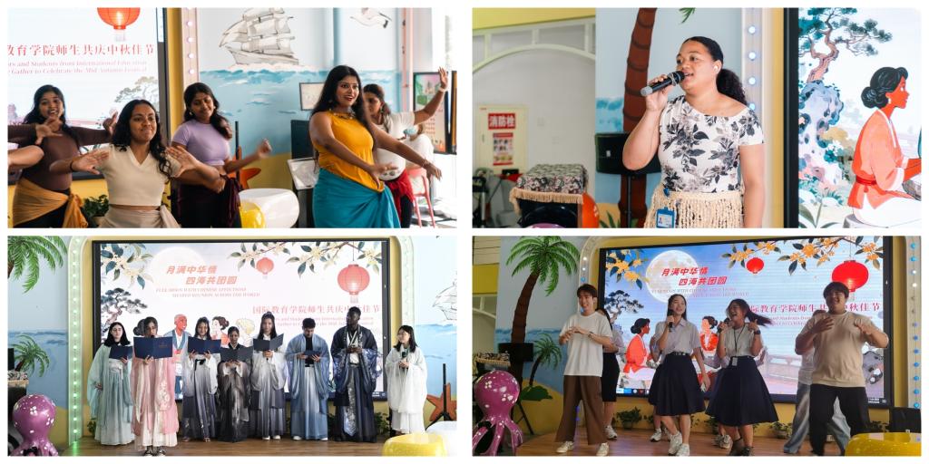 精彩的节目表演环节将活动推向高潮。来自斯里兰卡的学生带来开场舞《悦动》,灵动的舞姿、欢快的节奏,展现了异国文化的独特魅力,赢得了现场阵阵掌声;随后,中文歌曲《月满西楼》缓缓响起,婉转的歌声将古典诗词的韵味与中秋的思念之情完美融合,让在场师生沉浸在悠扬的意境之中;诗词朗诵《水调歌头・明月几时有》则以深情的演绎,传递出“但愿人长久,千里共婵娟”的美好祝愿,引发了中外师生的情感共鸣;最后,活力四射的歌舞表演《What Makes You Beautiful》登场,青春的气息、动感的旋律,展现了中外学子积极向上的精神风貌,也让现场气氛变得更加热烈,不同文化在歌声与舞蹈中碰撞出和谐的火花。