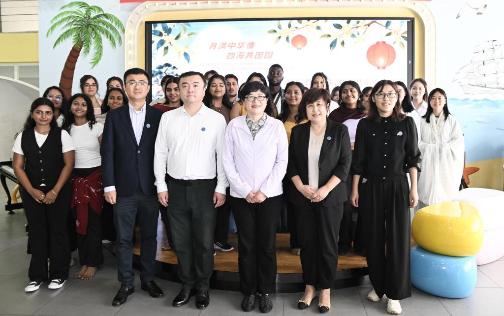 直属党支部书记兼副院长潘艳、副院长(主持工作)李晓东、副书记郭艳秋、副院长高鹏、学院全体教职工及留学生欢聚一堂,共叙团圆情,同享中秋乐。