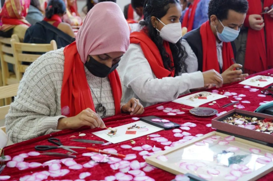 主题活动在一片欢声笑语中拉开了序幕。非遗文化传承人首先向大家展示了精湛的非遗文化技艺。随后,留学生们在非遗文化传承人的引导下,体验了面塑、豆画、剪纸的乐趣,一个个惟妙惟肖的面塑、一福福栩栩如生的豆画、一张张活灵活现的剪纸,承载着留学生们对兔年新年的美好祝愿。