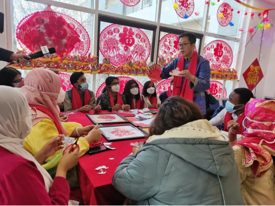 (国际交流合作中心)副院长郭艳秋及部分学院教师参加了此次活动。来自伊朗、巴基斯坦、斯里兰卡、坦桑尼亚、津巴布韦等国家的40余名留学生在活动中体验中国新春民俗,感受中国传统佳节的魅力。